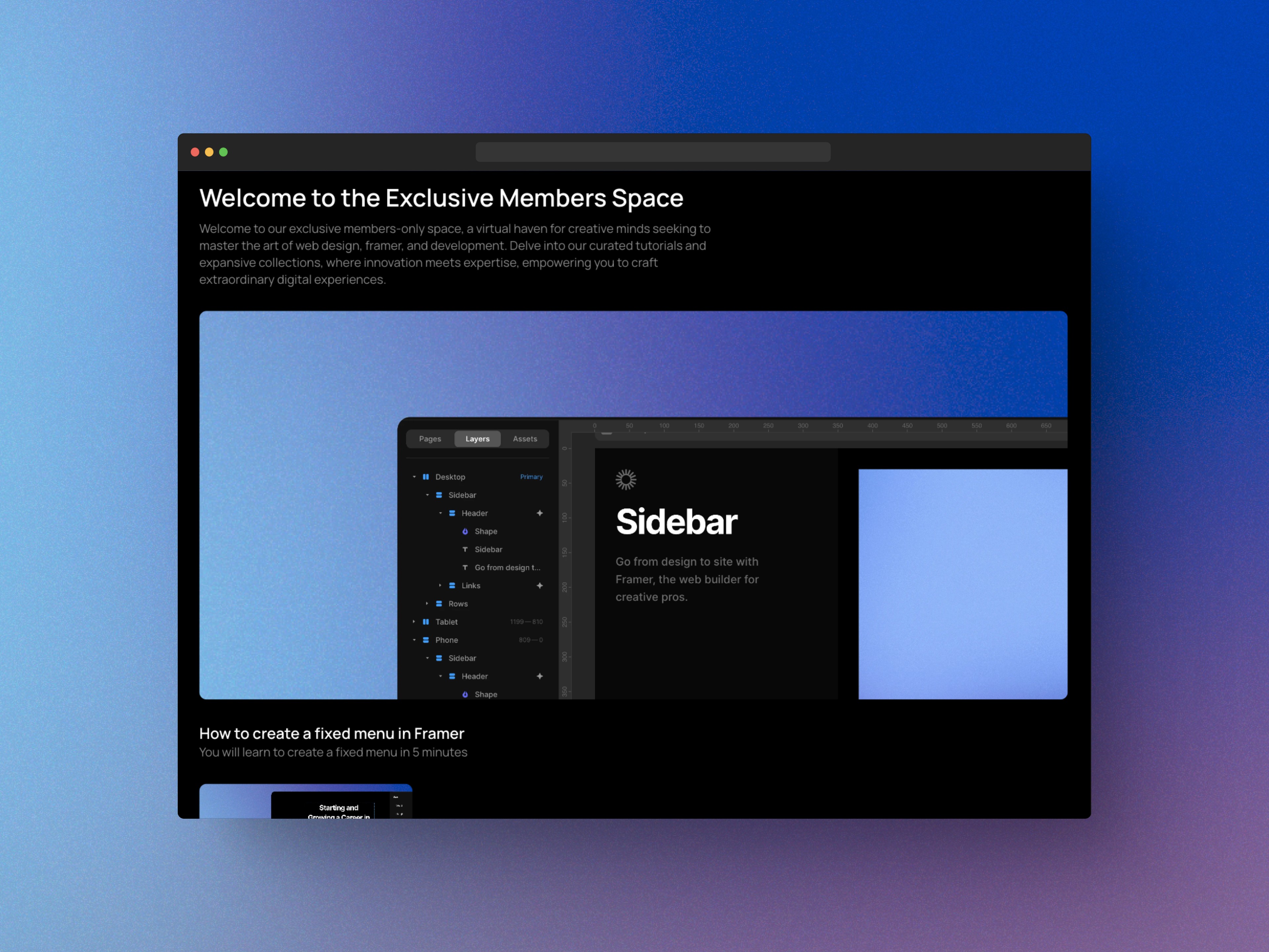 Welcome to our exclusive members-only space, a virtual haven for creative minds seeking to master the art of web design, framer, and development. Delve into our curated tutorials and expansive collections, where innovation meets expertise, empowering you to craft extraordinary digital experiences.